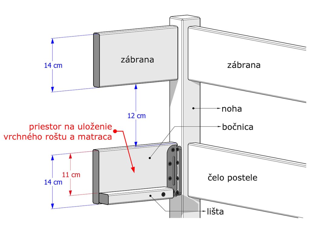 Vzdialenosť medzi horným okrajom matraca a zábranou by mala byť minimálne 16 cm.