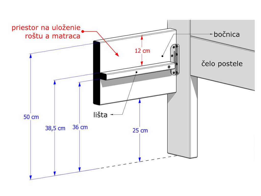 Výška čela pri nohách: 50 cm
