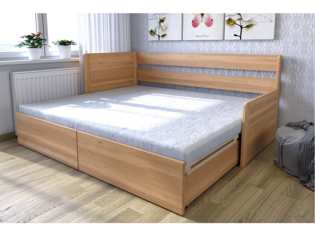 Rozkladacia posteľ Sára je vyrobená z kvalitného masívu buka v priebežnom prevedení, ktoré sa vyznačuje prirodzenou kresbou dreva a vysokou pevnosťou. Na rozdiel od parketového (cinkovaného) spoja pôsobí povrch elegantne a jednotne.