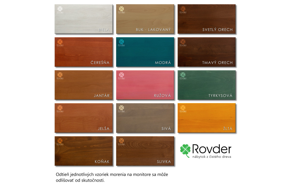 Na želanie je možné zvoliť morenie podľa vzorkovníka, aby posteľ dokonale ladila s vaším interiérom.