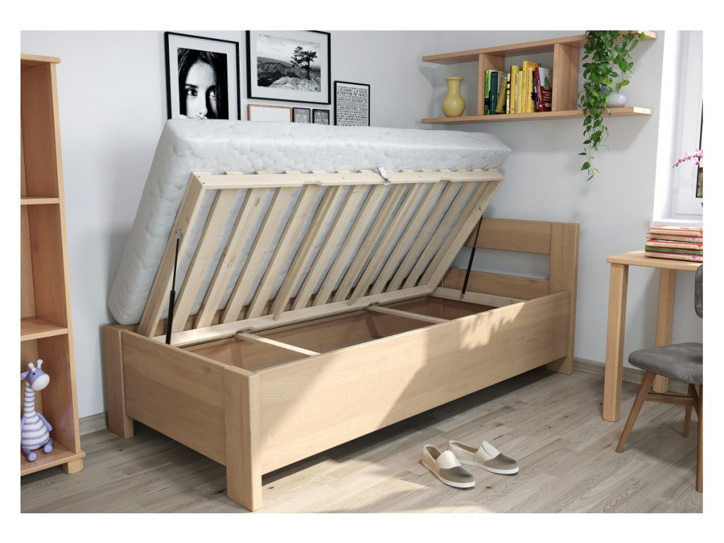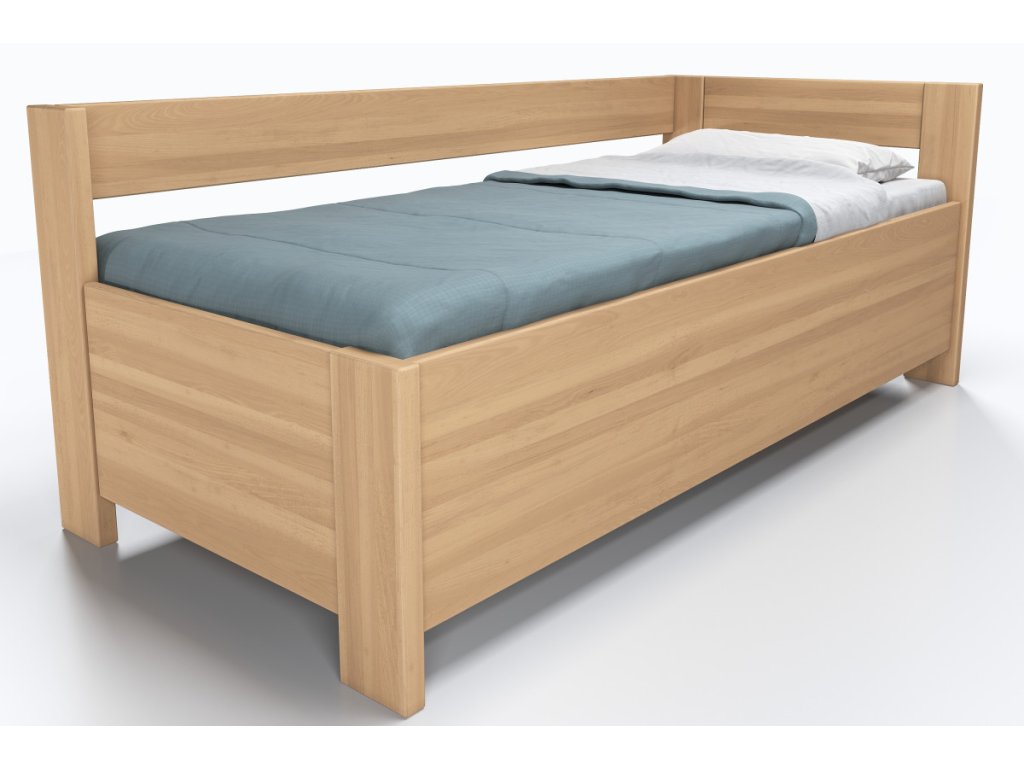 Buková rohová posteľ Ela s opierkou a úložným priestorom