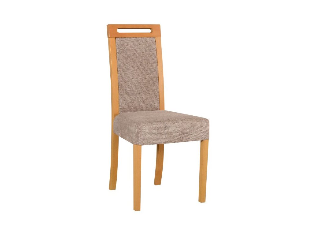 Elegantná jedálenská stolička s dôrazom na komfort a dlhú životnosť. Stabilná konštrukcia z masívneho bukového dreva poskytuje vysokú odolnosť pri každodennom používaní, čalúnené sedadlo zabezpečuje pohodlné sedenie pri rodinných aj spoločenských stretnutiach.