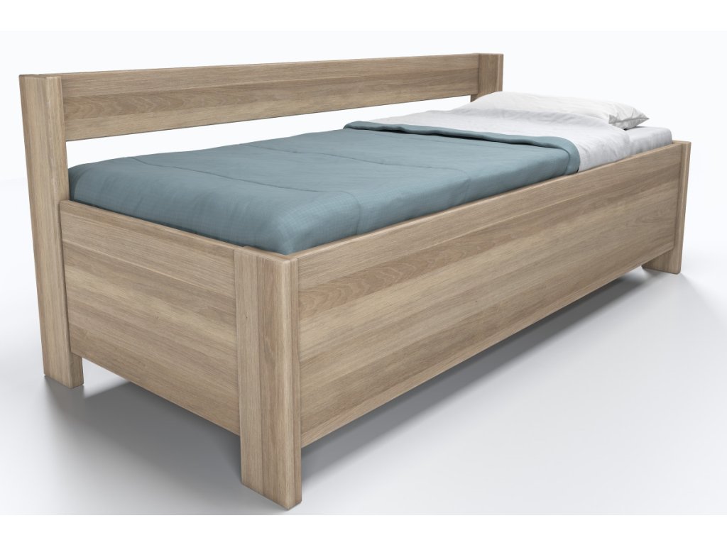 Dubová posteľ Ela s opierkou a nízkymi čelami s úložným priestorom