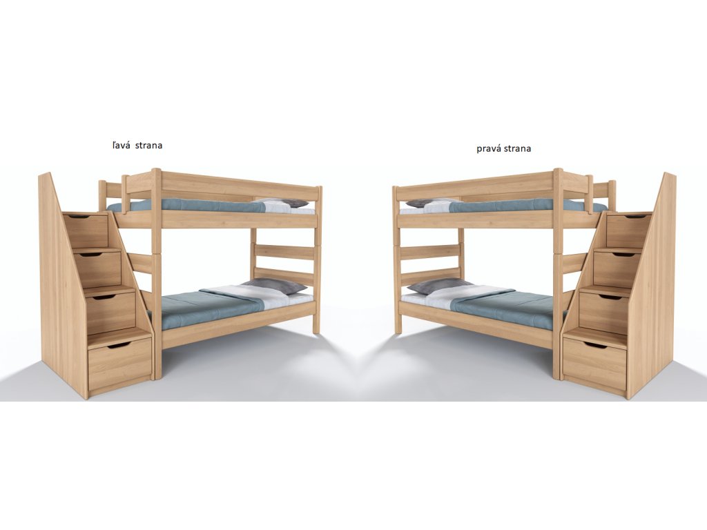 Posteľ sa dá rozložiť na dve samostatné lôžka. Dodávané v demonte (schody sa dodávajú už zmontované).