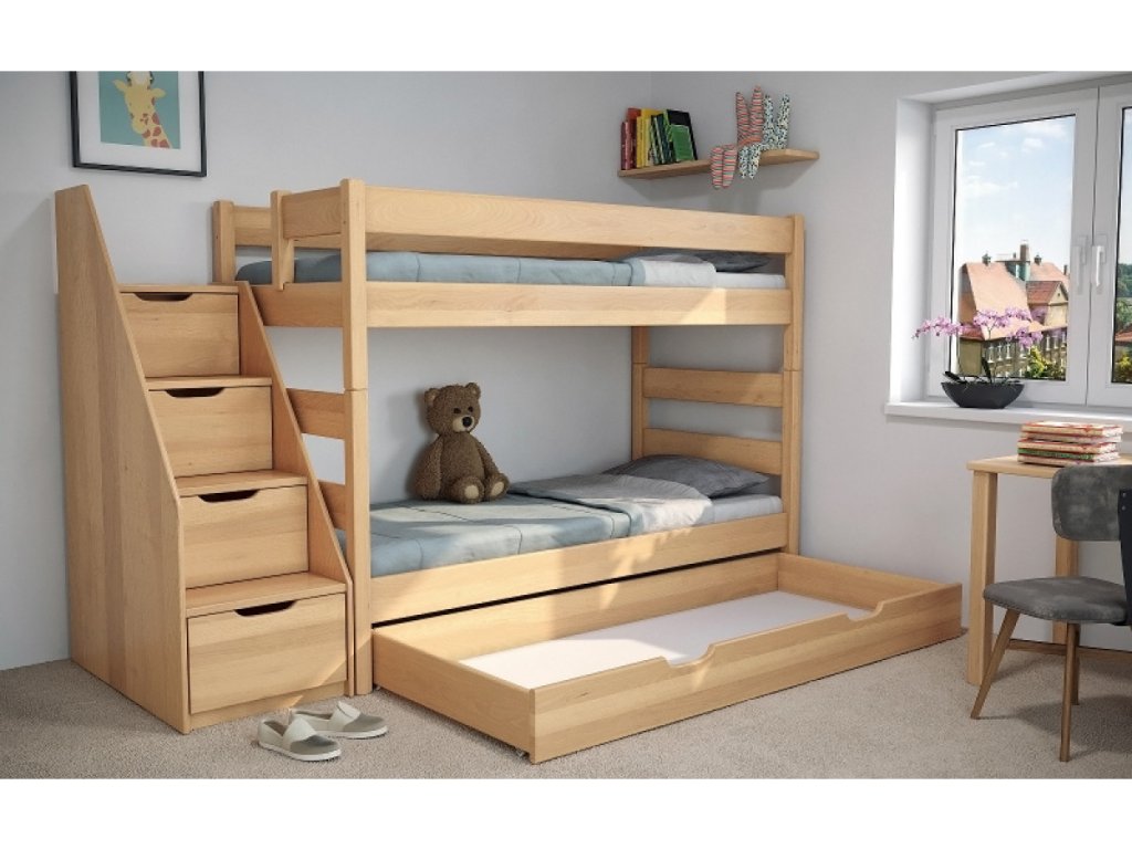 uková poschodová posteľ JUNIOR 4 – bezpečný výstup a praktický úložný priestor v jednom