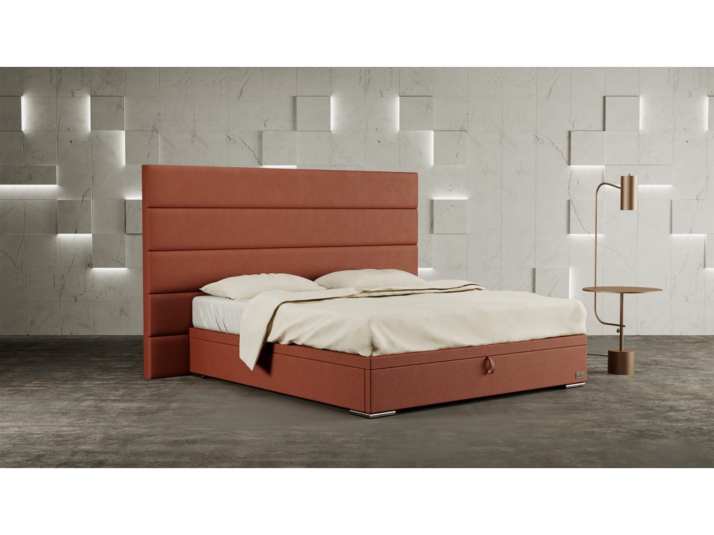 Luxusná posteľ s veľkým úložným priestorom z kolekcie dizajnových postelí, kde sa spojil estetický zážitok, zdravý spánok a kvalita na najvyššej úrovní.