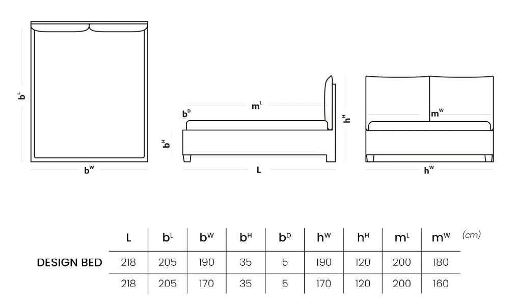 Korpus postele je dostupný v dvoch štandardných hrúbkach: