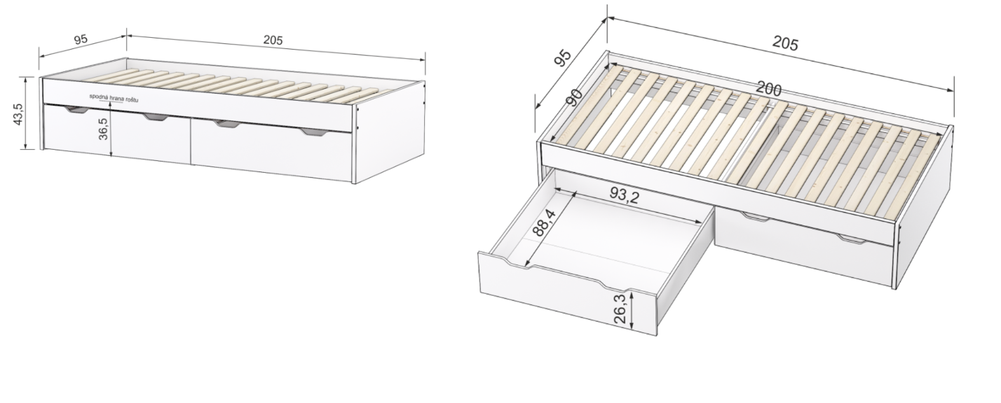 • Rozmer lôžka: 90 × 200 cm
