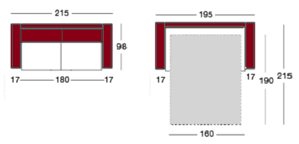 Rozmery pre 2,5F (s područkou širokou 17 cm):